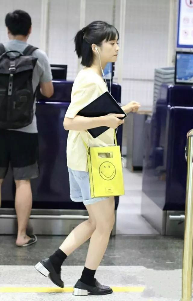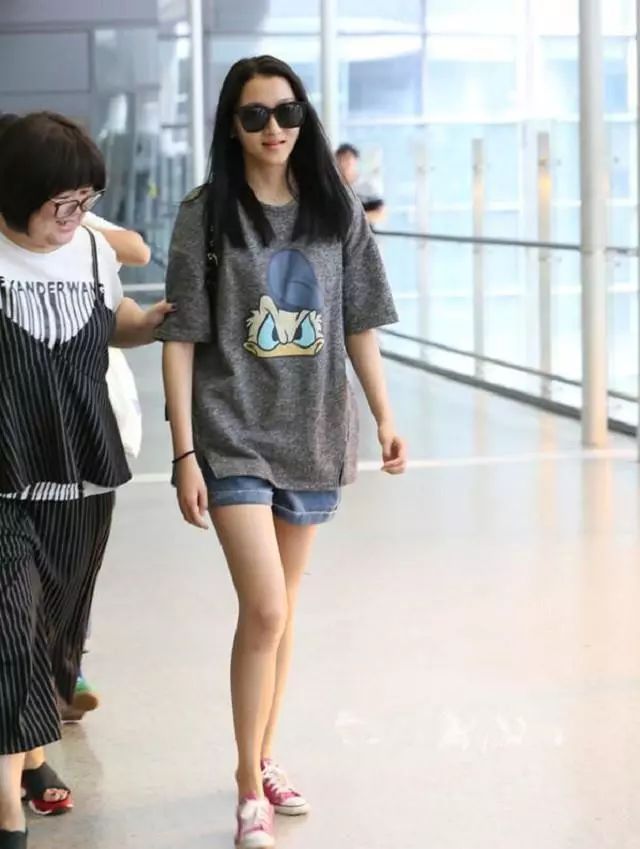 在路人镜头下关晓彤不再是我们印象中有些“微胖”的感觉,反而非常高挑,只是肤色看起来有些暗黄。