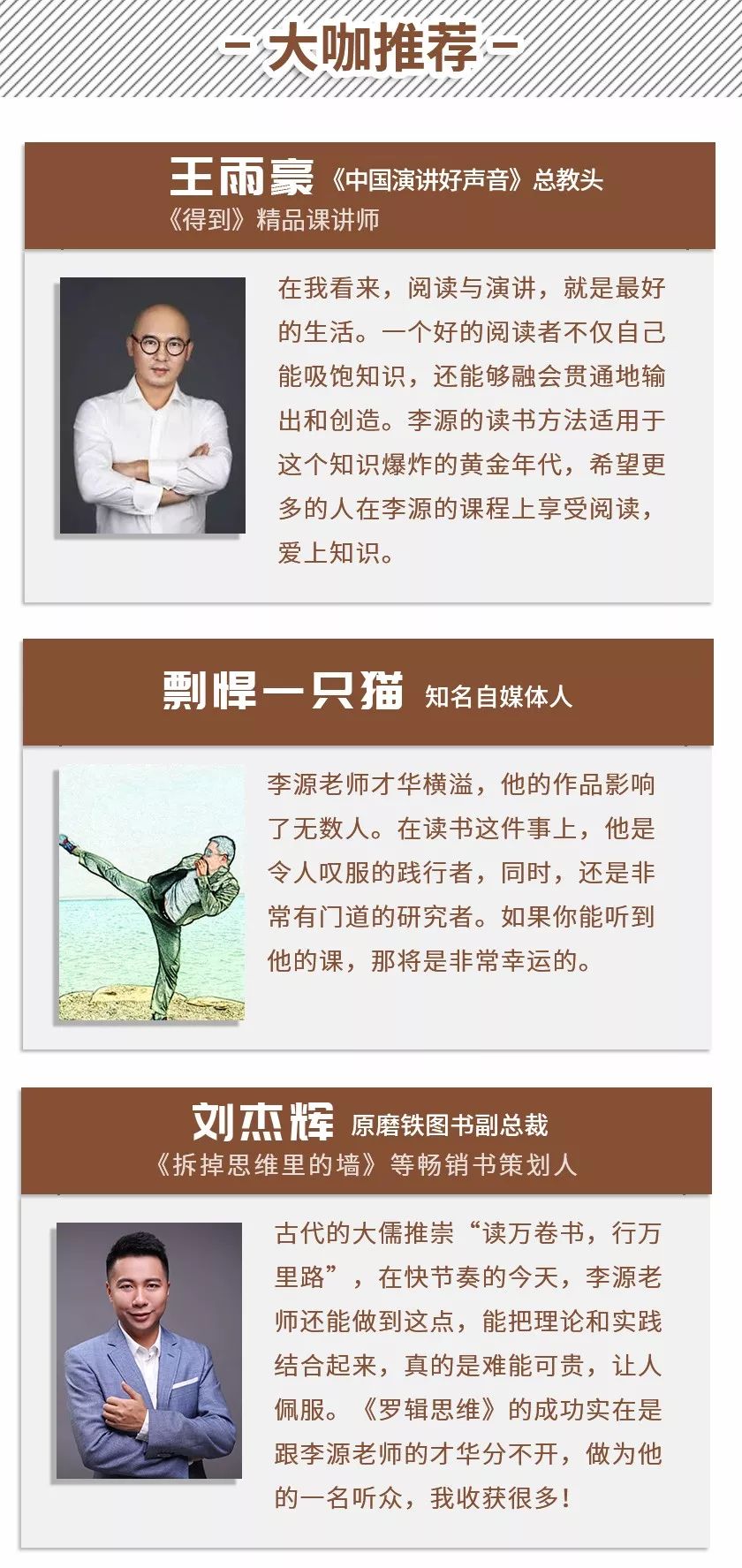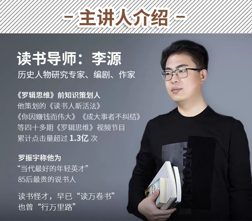 他在“知识付费”领域的成功,离不开早期视频节目《罗辑思维》的火爆,而《罗辑思维》的火爆离不开罗胖的知识策划人——李源。 李源一位读书怪才,他的读书方法与众不同。 他策划撰写的《成大事者不纠结》、《你因赚钱而伟大》、《秦始皇的秘密》、《读书人的新活法》等40档节目都获得了巨大的成功。仅仅在优酷,播放量就超过了1.4亿。经他推荐的许多图书,单周销量都达100000册上下的水平,这在当时的出版界,可是真正炸开了锅。