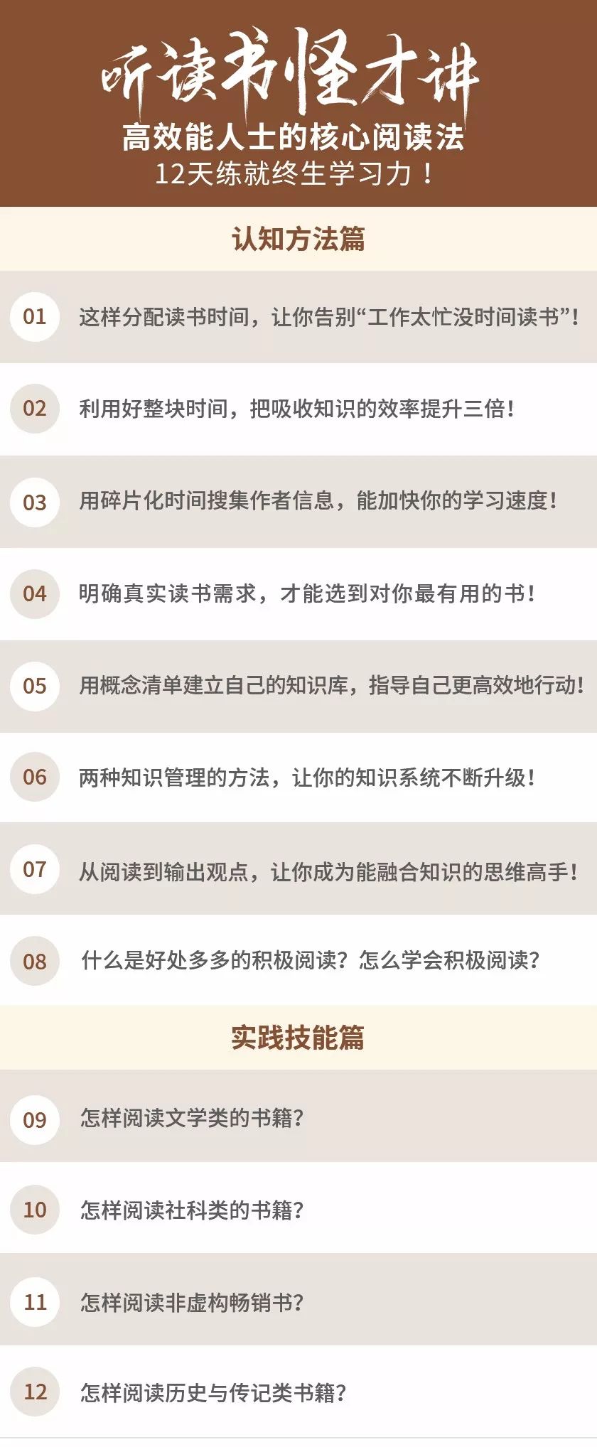 很多人称他为“最年轻的知识大秘”,向他请教读书方法,让他推荐书单。 他直言读书有方法: “大多数时候,我读书不会从头到尾地看,而是运用二八法则,注重提炼拆解重点。读书不在于快慢,而在于将读过的书化为己用,将工作和生活变得更好,才是根本。” 他对阅读推荐书单的建议是:“我认为不同年龄段的人对书的需求不同,但适合所有人、任何年龄阶段的,那就是人物传记和一些经典著作。” 想要改变自己的现状却又无法长期做出努力? 不妨学习一下卡耐基,看他是如何从《富兰克林传》中得到榜样的指导,一点一点改变自己的现状! 想要在某一领域成为顶尖高手,但是苦于专注力不够? 不妨看看乔布斯当年是如何从《一个瑜伽行者的自述》取经从而提升专注力! 想要提升自己的眼界和格局,但是不知道如何下手? 不妨借鉴一下张学良读《明史》的故事,看看人们在谈论格局的时候,到底在谈论什么! 从名人经历和经典中能够提炼出心法,以及如何指导行动,最终得到了什么结果,这是件非常有意义的事情!