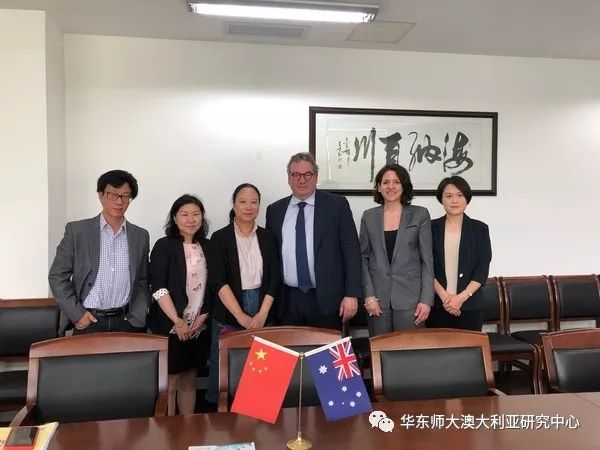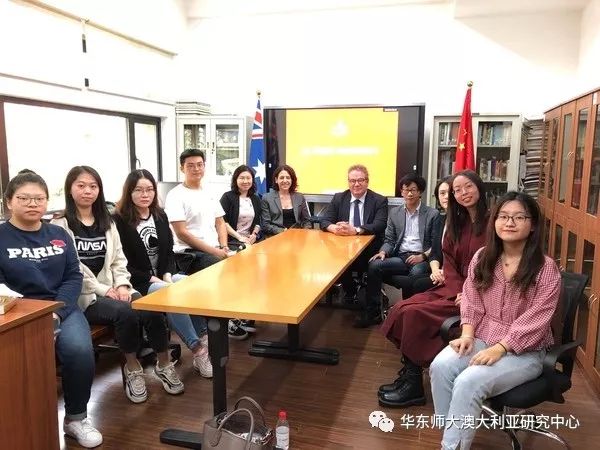 2019年10月24日,澳大利亚乐卓博大学(La Trobe University)副校长Richard Speed、助理副校长Amalia Dirolio、国际交流处高级主管谢晖对华东师范大学外语学院进行访问,外语学院院长袁筱一、英语系、翻译系主任、澳大利亚研究中心主任陈弘会见了澳大利亚贵宾。