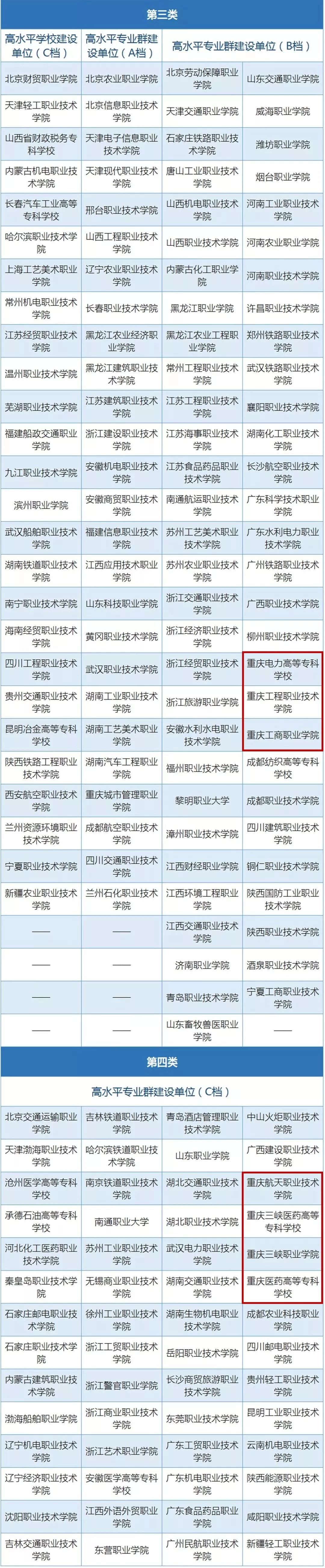 第三类包括:高水平学校建设单位(C档)26所、高水平专业群建设单位(A档)26所、高水平专业群建设单位(B档)59所;