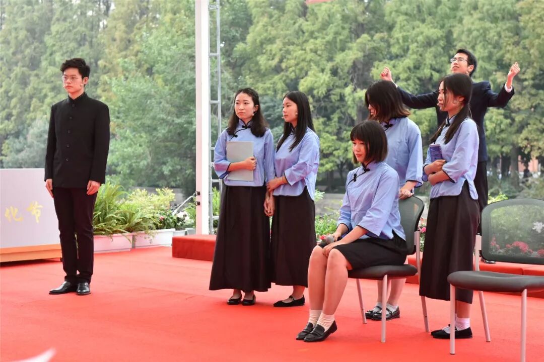 上海广播电视台节目主持人、华东师大传播学院播音主持艺术专业兼职教授曹可凡也来到现场,与华东师大的学生们同台演绎节目。他娓娓道来的诗朗诵《一条小河之源》悠悠地传递着师大情怀。