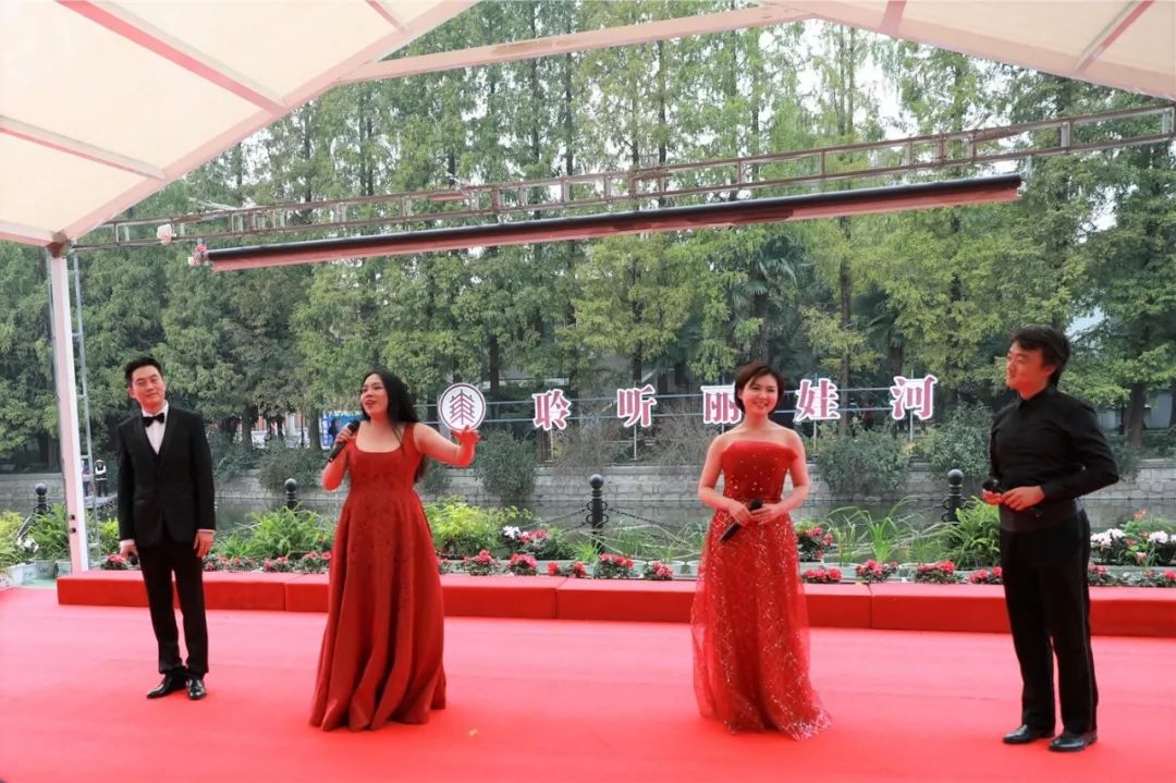 华东师范大学附属幼儿园的小朋友们与播音主持艺术专业的本科生们共同带来的《聆听丽娃河》诗朗诵拉开了音乐节的帷幕。“让我们高举起欢乐的酒杯,杯中的美酒使人心醉……”在轻松欢快的氛围中,音乐学院青年教师徐卉、高凌媛、张翼飞与音乐学院博士研究生共同演唱了《饮酒歌》。