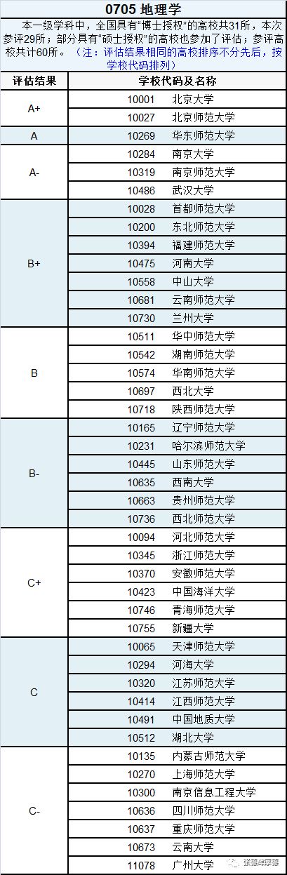 2017年12月28日教育部学位与研究生发展中心公布的第四轮学科评估一级学科地理学,评估结果如下: