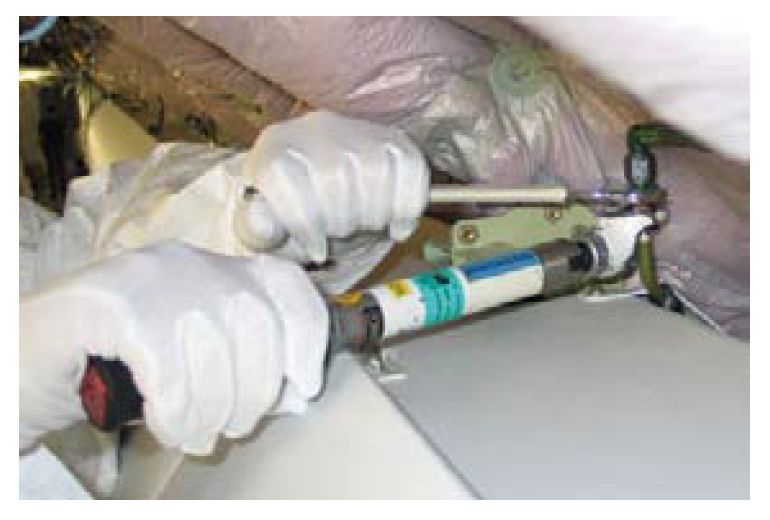 静电或短路引起的放电。记住要把飞机和氧气维修设备接地,并把它们连在一起。在驾驶舱、工作区和驾驶室中张贴警告提示,警告在充氧过程中不要操作电气开关。不要使用手机。如果雷雨期间有闪电的危险,停止所有氧气服务操作(图5)。