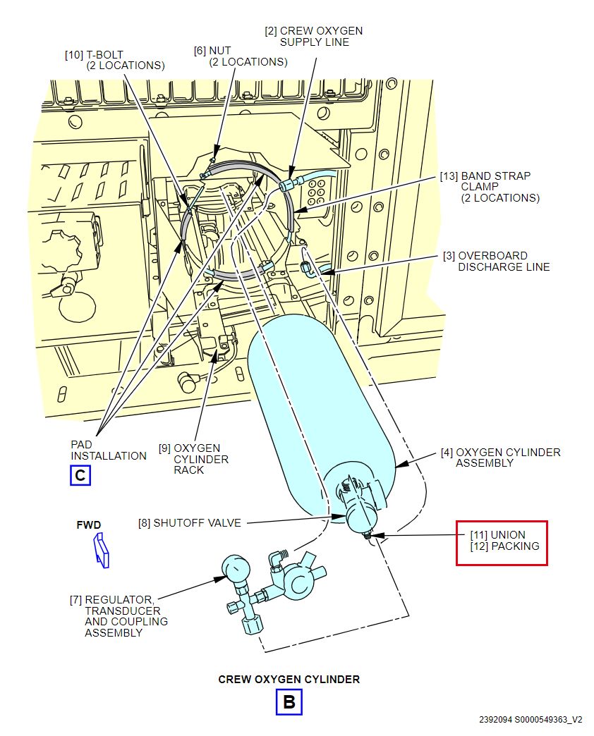 在拆卸和安装氧气部件时,请确保地面支持设备已批准用于氧气系统