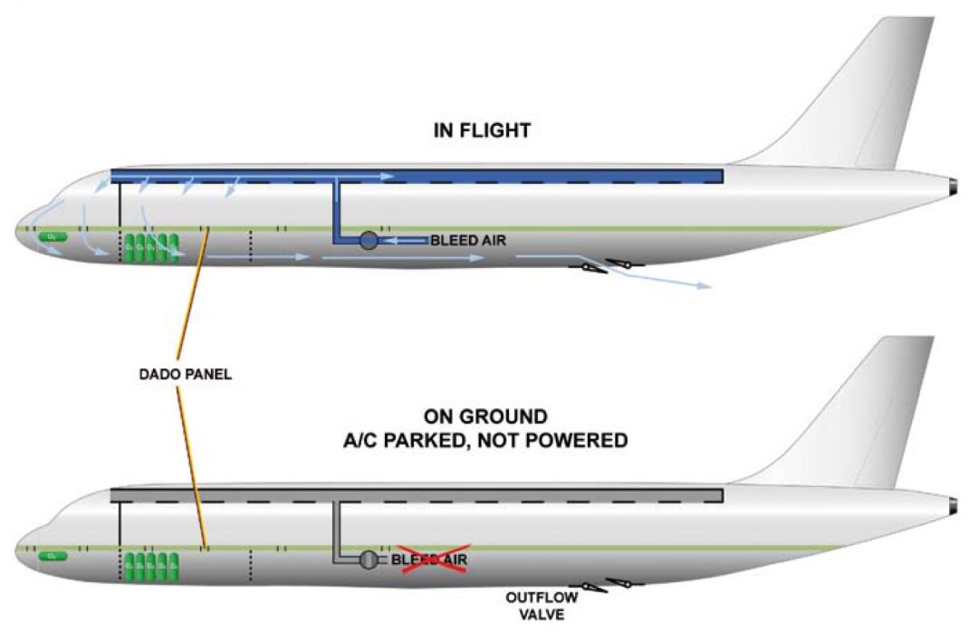 ▌图2:飞行中和地面时飞机的通风