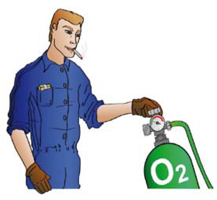 在通风不良的空间中,阀门或接头泄漏会迅速将氧气浓度增加到危险水平。因此,进入装有氧气瓶的特定区域的人员应了解富氧环境的潜在危险。