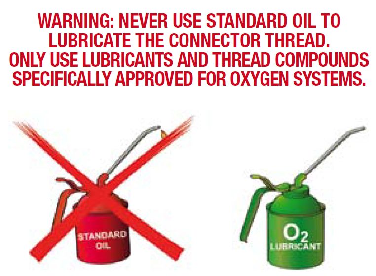 切勿使用机油或润滑脂润滑氧气设备