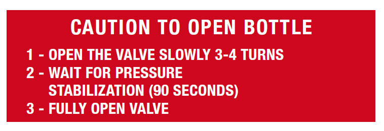 氧气阀打开或关闭过快可能导致高氧气流速,产生摩擦热。慢慢打开氧气瓶的手动阀,并将其转到全开位置(图6)。