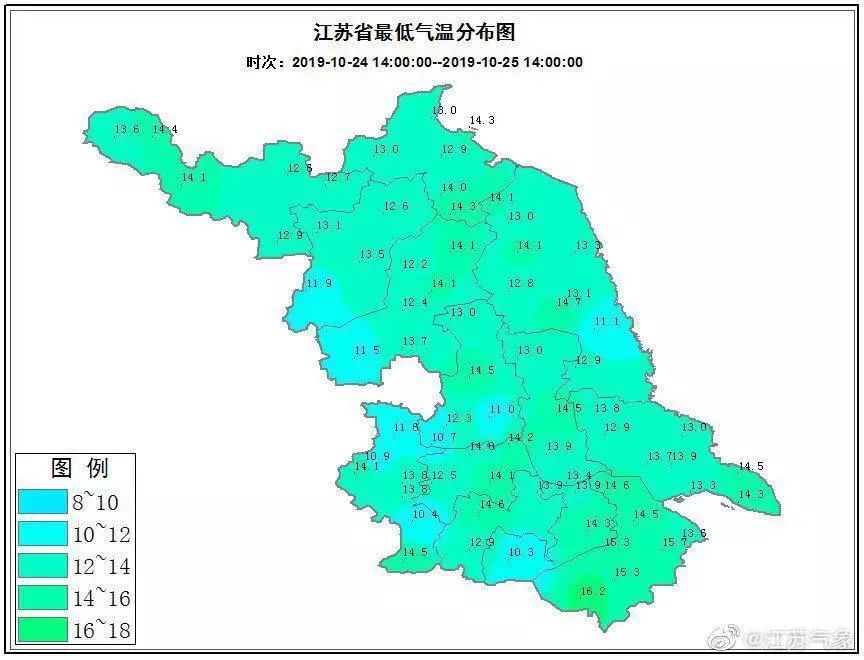 最低气温江苏省平均在15℃以下,