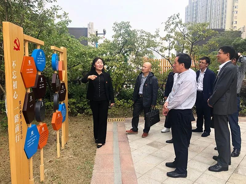 指导组参观了初心园并听取党支部书记傅仆芬主题教育工作汇报。