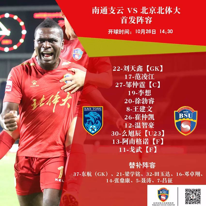 10月26日14:30,58同城2019中甲联赛第29轮展开争夺,北京北体大队客场对阵南通支云队的比赛在如皋体育中心体育场进行。经过90分钟的争夺,北京北体大在客场0-0与南通支云握手言和。北体大在收获1分的同时,也结束了本赛季的客场征程。