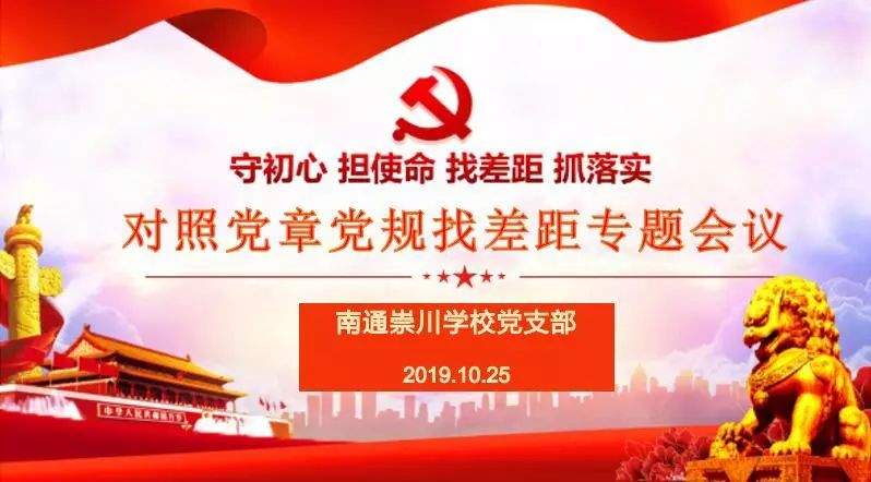 为持续深入推进“不忘初心 牢记使命”主题教育活动,南通崇川学校党支部于10月25日下午召开领导班子对照党章常规找差距专题会议。