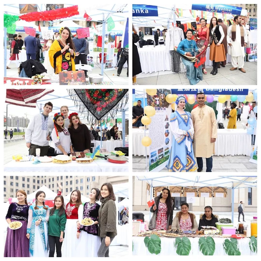 舞台下,来自76个国家与5个中国学生社团组成的81个文化展台正在如火如荼地进行展示。身着各式服装的留学生朋友们热情自豪地分享本国的风土人情与历史文化:绚烂多彩的哈萨克斯坦民族服饰、悠扬动听的缅甸竹排琴、趣味横生的尼泊尔手工艺品,而留学生们也在展示舞龙舞狮、国学武术等中国学生社团的展位前驻足留念。一时间,小小的广场变成了海纳百川的地球村,留学生们用自己独有的方式邀请全校师生一起加入这场欢乐的文化派对。各位“游客”手持纪念版“护照”,穿行于鳞次栉比的各国展位,盖上通关印章,仿佛也打卡了全世界的文化坐标。此时此刻是无时差的环球之旅,此情此景更是无国界的交流共叙。