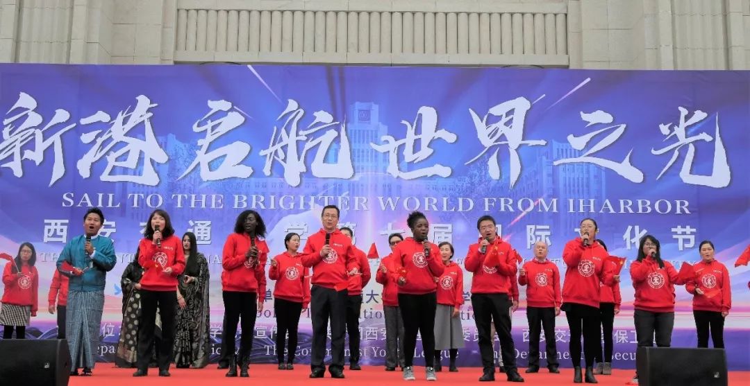 寒凉的深秋抵挡不住兄弟院校的盛情赴约,美妙歌喉与动感舞步共同谱写出一曲友谊之歌。西北大学表演的酷炫街舞嗨翻全场,西安建筑科技大学与西安石油大学留学生的深沉歌喉引发台下观众一齐欢唱。开幕式尾声,熟悉的旋律在耳边奏响,一曲由留学生与国际教育学院老师共同献唱的中英文版《我和我的祖国》跨越了文化界限,共同高歌自己与祖国不可分割的深厚情谊:尽管远离故土,中国永远是留学生的第二故乡,在交大的栽培下,中外学生将携手扬起新港之帆,一同远航!