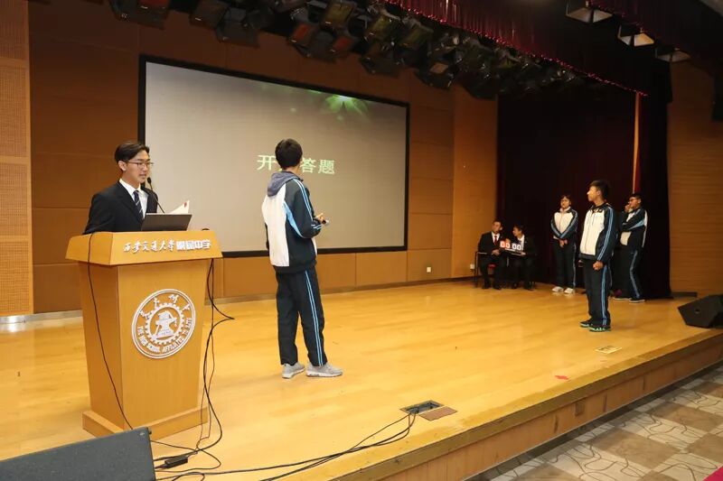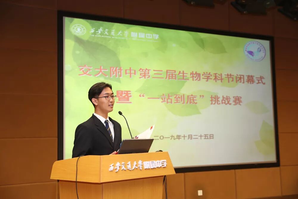 闭幕式上还举行了“一站到底”生物知识挑战赛,作为生物学科节的压轴项目,也将此次活动推至高潮!李昀齐、陈琦子同学最终凭借扎实的学科知识从挑战赛赛程中脱颖而出,进行了最后一轮“交大附中生物学神”争霸赛!学弟李昀齐边答题边卖萌,常常发出“我好难啊!我真不会啊!”的金句感叹,引起观众们爆笑连连!学姐陈琦子凭借超强的生物学科知识,对每道题都进行了细致的分析,在答题的同时,还为现场观众讲解了很多学科知识,引起老师和同学的频频赞叹,现场掌声雷动。最终,李昀齐凭借他爆棚的“运气”获得了交大附中“生物学神”的称号!