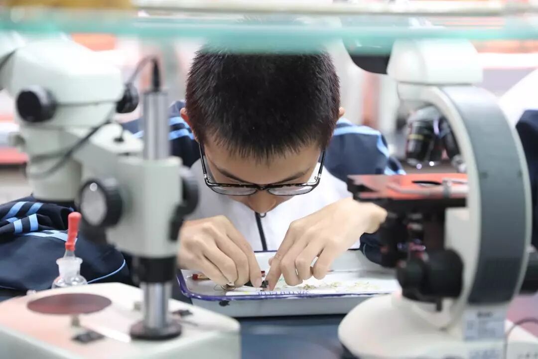 多项生物趣味实验让同学们零距离接触象征着吉祥圣洁的百合花,心脏位于身体背部的大虾,没有雌雄之分的蚯蚓,能给人类提供21世纪最后营养珍宝-甲壳素的蝗虫,在学生们的蜡盘里生物尽显其结构之序理,在显微镜下尽显生命之精细,原来生命可以更美的。