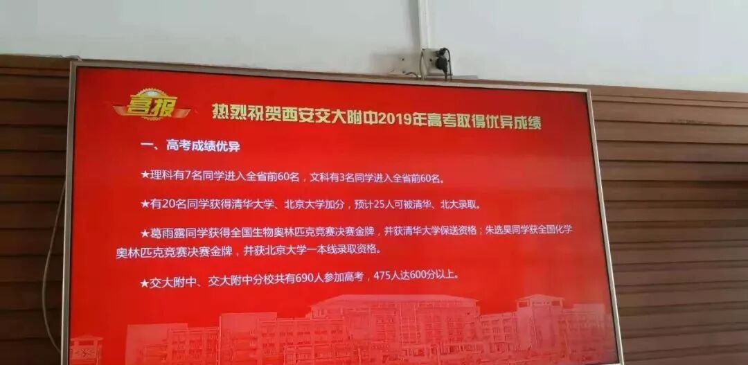 西安交大附中2019高考成绩:600分以上475人(690人参加高考)。理科7名同学进入全省前60,文科3名同学进入全省前60。