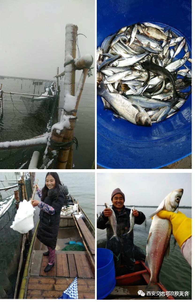 为了避免围网里面的鱼和大闸蟹抢食,来年1月,会想方设法把围网里面的鱼都捕捞完,下图为2018年1月:阳澄湖下起了大雪,为了避免围网被压塌,岳父岳母出湖清雪,顺带捕鱼。瑞雪兆丰年,然而那一年阳澄湖大闸蟹并没有丰收。