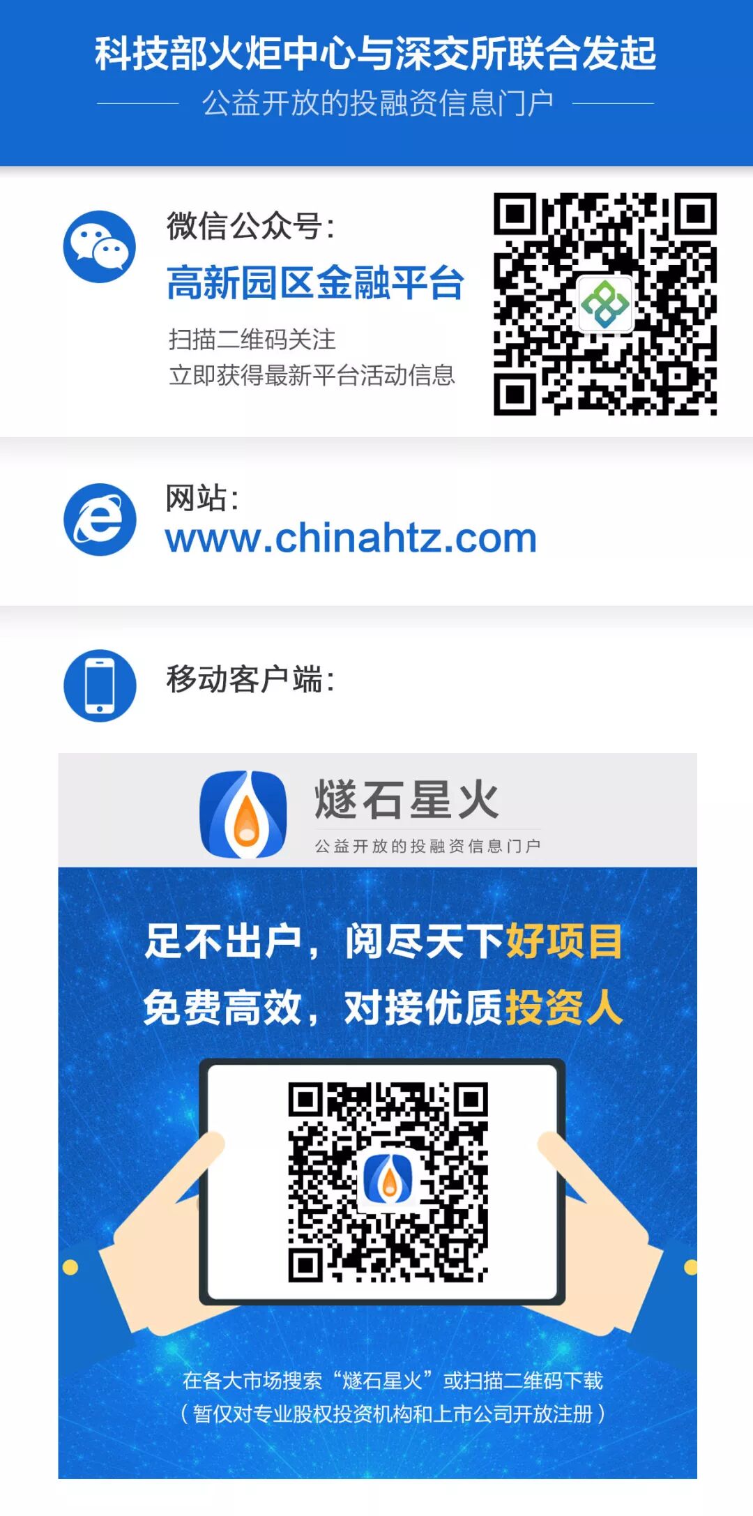 路演视频和项目信息将在活动结束后,在“中国高新区科技金融信息服务平台”(www.chinahtz.com)及燧石星火APP发布,欢迎登录查阅。