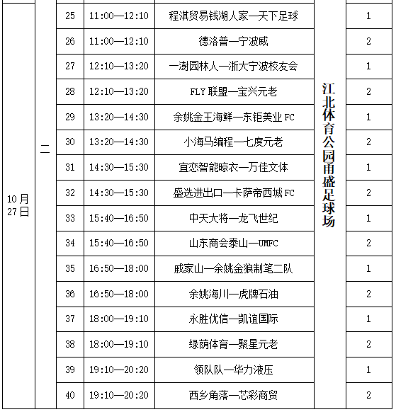 2019“威龙杯”宁波市足球等级联赛(乙级/快乐杯)正赛第二轮10月27日比赛预告
