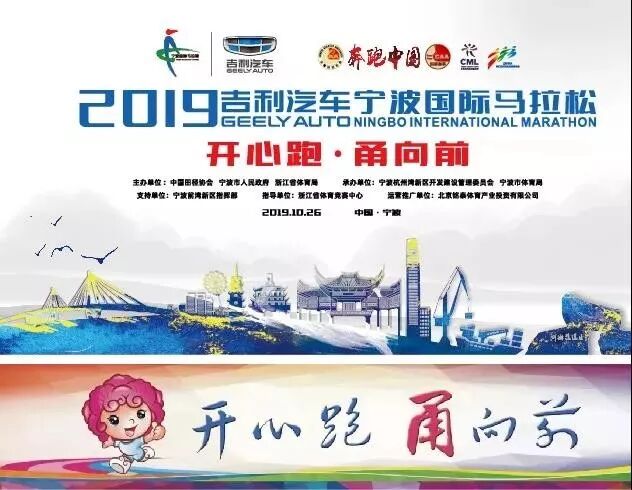 “开心跑,甬向前”,10月26日上午8时,2019吉利汽车宁波国际马拉松在宁波杭州湾新区开跑。本届赛事由中国田径协会、宁波市人民政府和浙江省体育局主办,宁波前湾新区指挥部支持,宁波杭州湾新区管委会、宁波市体育局承办,北京铭泰体育产业投资有限公司独家运营。