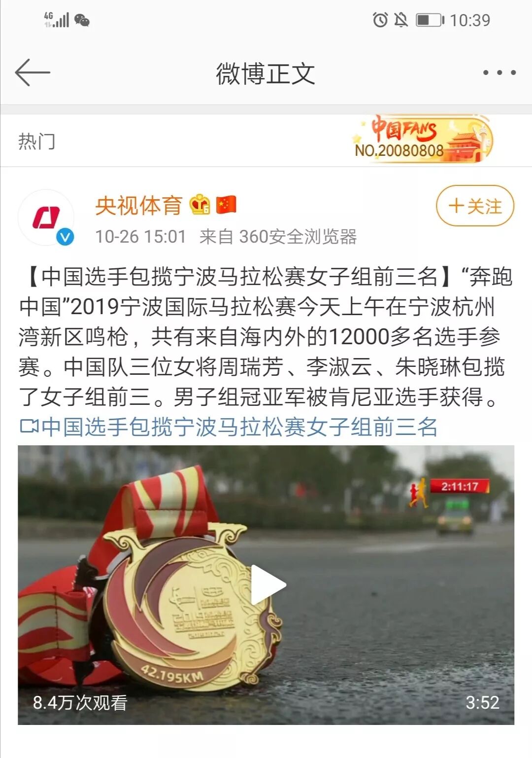 CCTV5直播2019宁波国际马拉松,解说员点名的小糯米在这里