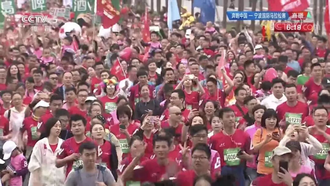 本届甬马成功入选2019年“奔跑中国”马拉松系列活动,央视体育频道围绕新中国成立70周年,以“爱国情、奋斗者”为主题进行160分钟的现场直播,宁波电视台、企鹅直播同步直播。宁波民营经济的代表人物——方太厨具董事长茅忠群,践行支教扶贫、东西部协作扶贫的代表人物——全国道德模范周秀芳,起吊宁波港第700万个标准箱、见证世界级港口宁波舟山港发展的代表人物——全国劳模竺士杰,在本次甬马的直播中登上央视,用奋斗和奔跑诠释“爱国情、奋斗者”的意义。