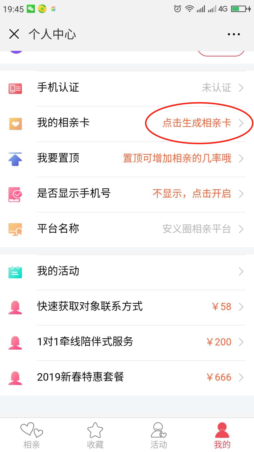 登记保存后,返回上一个页面,记得生成相亲卡图片,然后把图片微信发给红娘花姐 ,提供