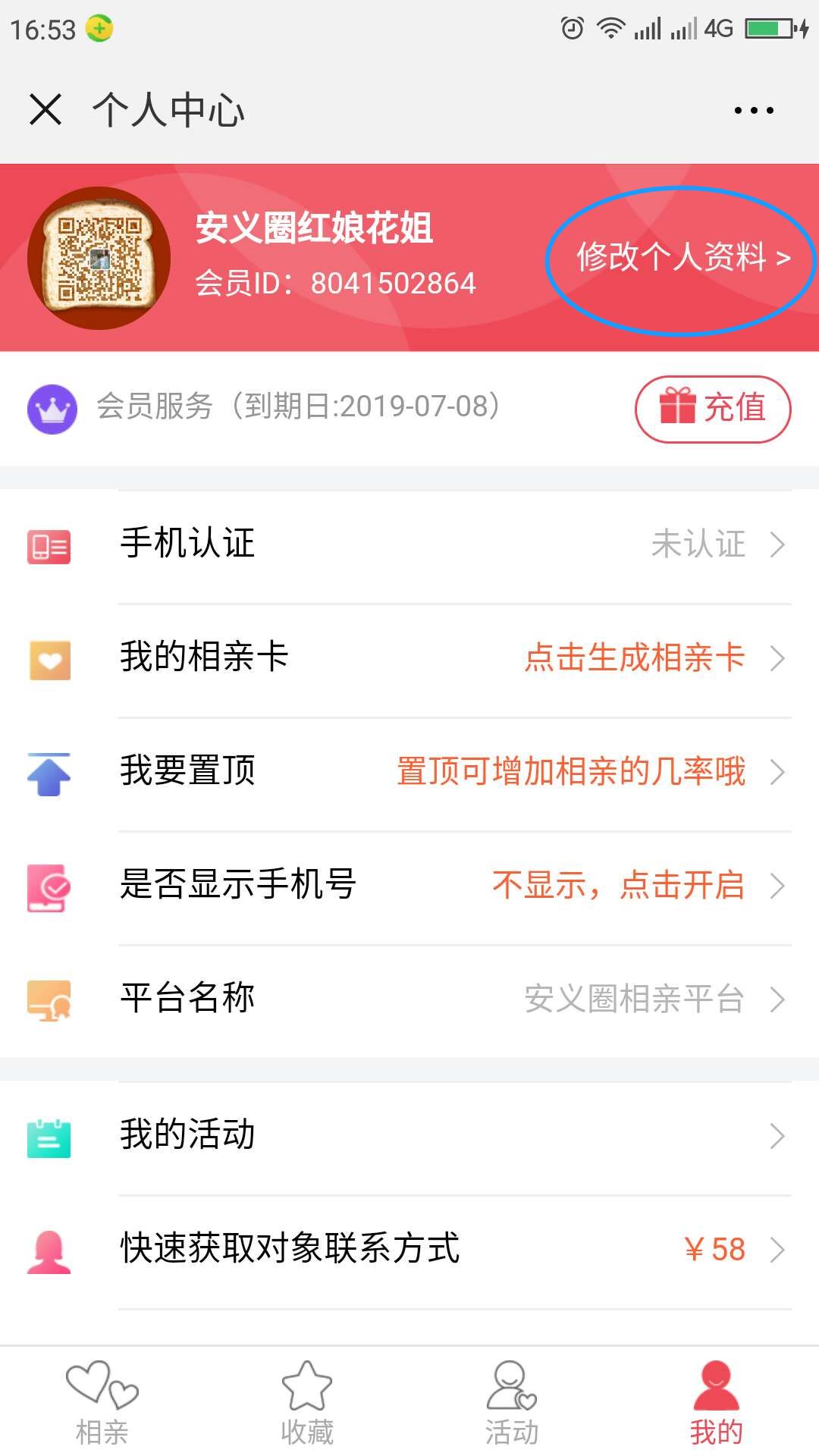 点击修改个人资料,进行登记,资料一定要完整真实!