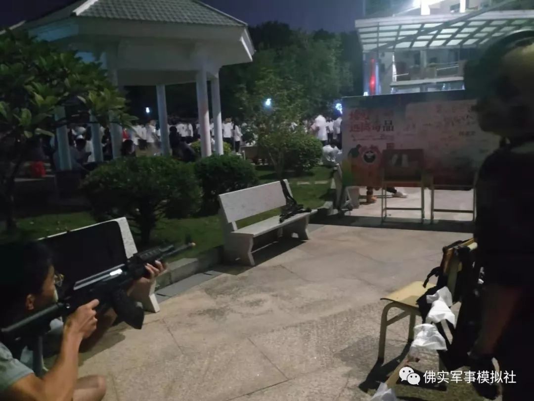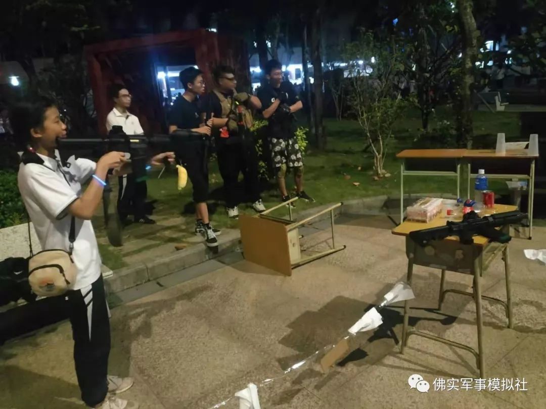 佛实军事模拟社参加了2019年的校园游园会活动,在学校摆出了一个小型打靶场地,展示水弹发射器,进行竞速射击比赛,受到许多同学们的欢迎。