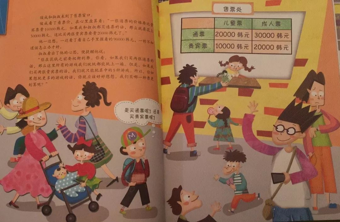 比如货币的价值大小,故事情节通过不同种类的门票价格来体现,主人公要买一种划算的票,不同票价的比较就是货币价值的大小判断。