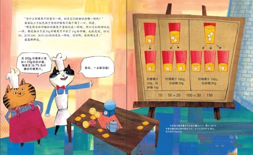 教材中关于比和比例的知识是从理论角度展开的,难以理解,《嗨,小学数学》就通过《露露和丽丽的柠檬果汁》这个故事,让孩子对数学概念一点就透: