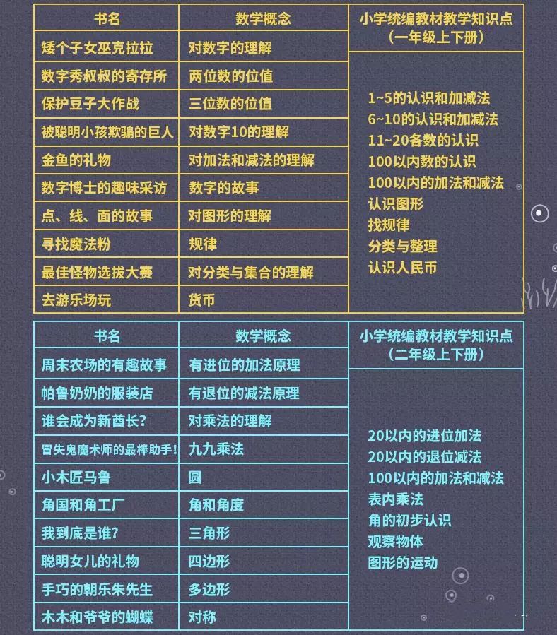 这套书一共有六辑,对应小学1~6年级。与小学统编一到六年级数学教材内容高度契合。这是每一辑与数学教材的对应表。