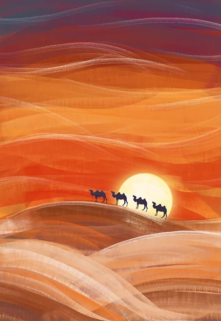 骆驼的峰就是一座拱桥,它沟通了东方和西方的文化,驼铃是最可靠的信使、最动人的信息。