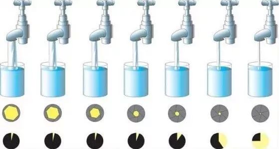 水龙头开得越大(光圈越大),流水的时间就越短(快门越快)。
