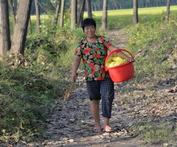 从田间撒化肥归来的农家大嫂,一手挎着塑料桶,一手拿着几颗黄豆,她卷着的裤管,将乡村人的随意挥洒的淋漓尽致。