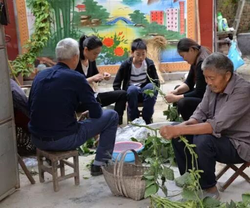 也许,在乡村最快乐的时光,就是和家人一起干活的日子了,大家有说有笑,摘着采撷回来的青豆,也带回了满院子的温馨。
