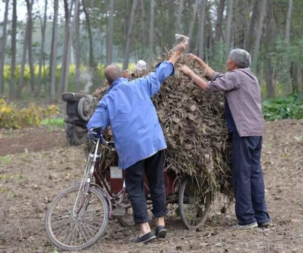 路边,这位老大爷的黄豆已经收入仓里,此刻,他正用力刹住捆绑的绳索,将豆秸来回家中。