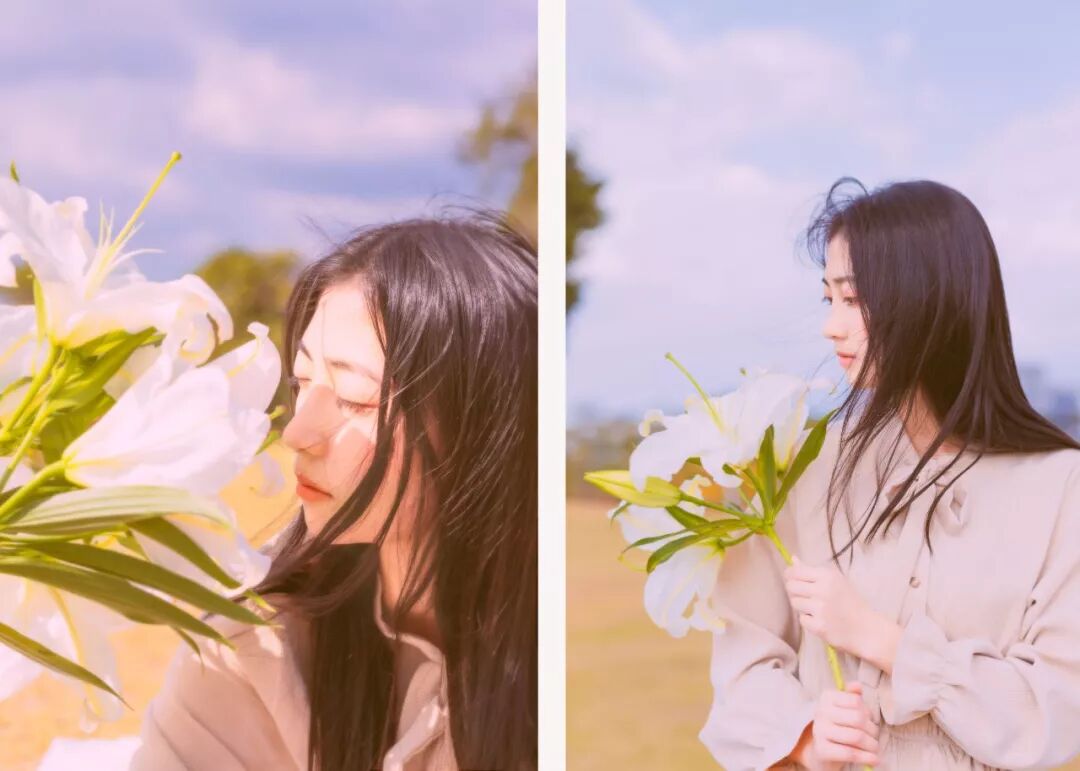 如何让一套写真更加写实完美。加一束鲜花就好~有了鲜花的陪衬,不仅会让画面更加充实。在拍摄时女孩的手也不会不知所措呀!