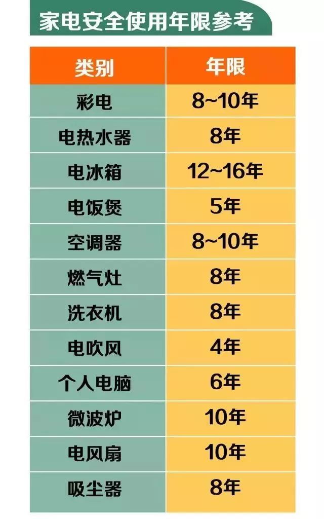 (附:部分家电安全使用年限参考)