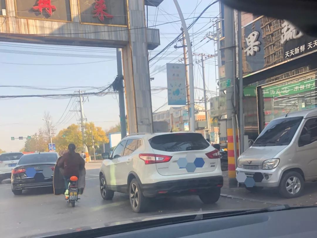 ▲这辆白车居然停在了右转路上,而且还是路口