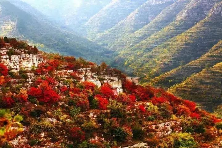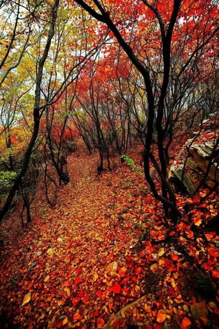 在最美时节欣赏摇曳生姿的美丽红叶,感受聊斋金色深秋的缤纷魅力!仿佛走进一个神奇的红色梦幻境地。处处被红叶遮掩,路被红叶覆盖,一簇簇、一团团,层林尽染,美不胜收。