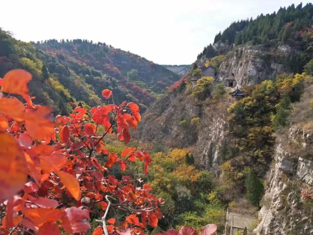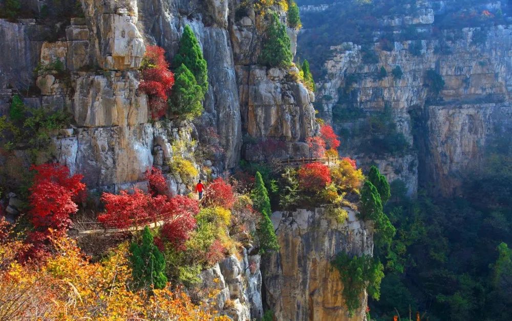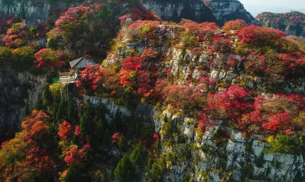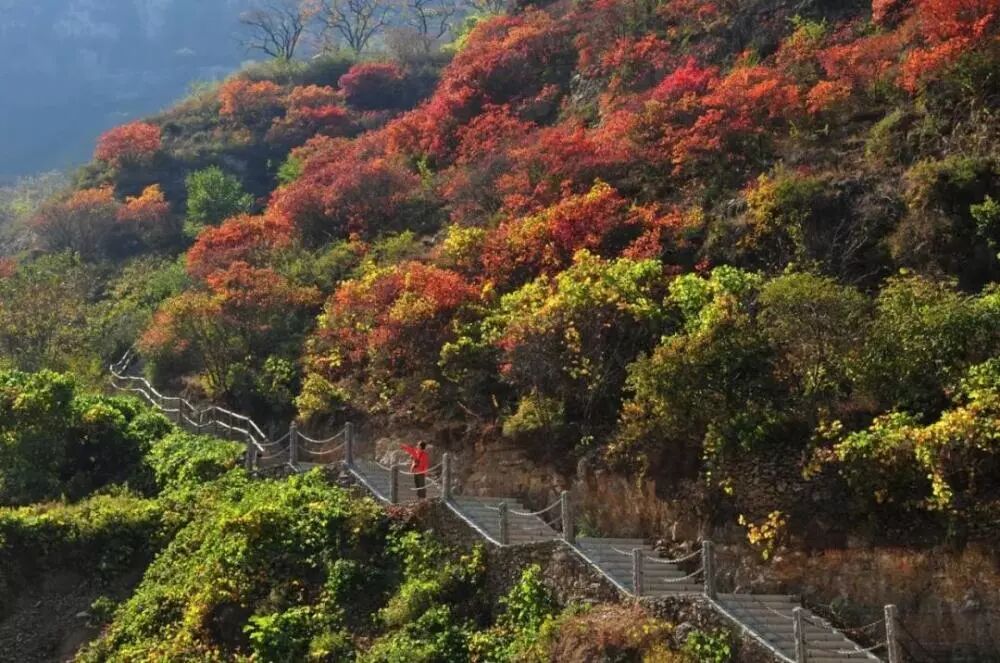 留仙谷漫山红透,热情似火,成为深秋的新宠。随着时节推移,树叶被染成为绮丽的鲜红色和金黄色,红叶画卷在留仙谷波澜起伏,让人入迷,让人痴醉。