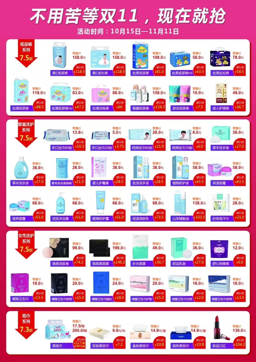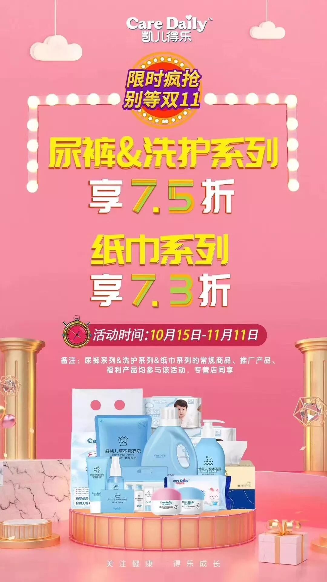 ?纸尿裤、洗护系?列7.5?折,纸巾7.3?折