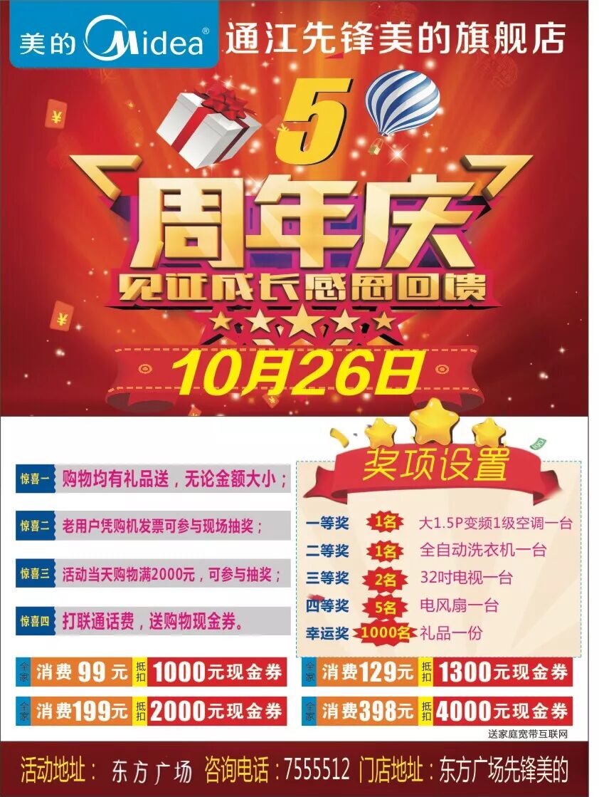 美的先锋旗舰店·5周年店庆感恩大回馈豪礼相送~10月25日-27日!