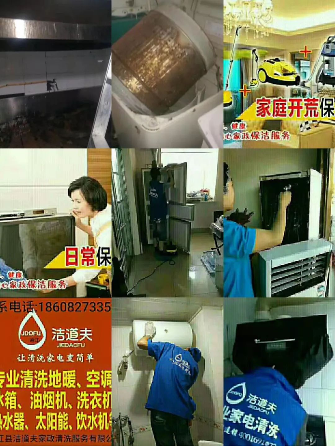 通江洁道夫家政清洗服务有限公司,专业清洗宾馆,酒店、单位食堂等大型厨房油烟抽排系统、各种办公场所的(柜机、挂机)空调、各种品牌的油烟机,空调,冰箱,洗衣机,热水器等家用电器的深度清洗保养。地暖清洗,机通下水道,自来水管清洗。维修各内家用电器及各类保洁服务,甲醛治理,老鼠和白蚁除害,护工(月嫂)等业务。全国连锁服务机构,一个电话,上门服务,