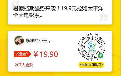 抢购电影票19.9元抢购太平洋全天电影票、不限场次、不限2D/3D