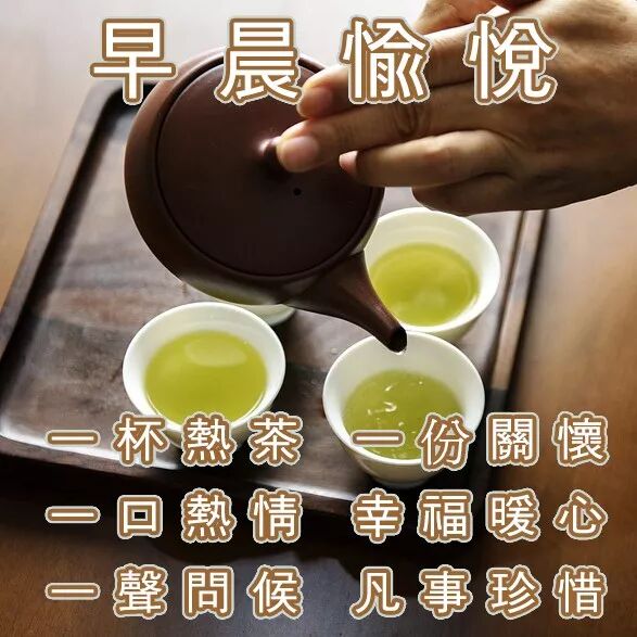 送你一杯早茶:以芬芳的祝福为叶,以温柔的叮咛做花,再以沸腾的热情为水,宽厚的包容当杯。愿你喝出你一天的好心情和一季的好运,早安!